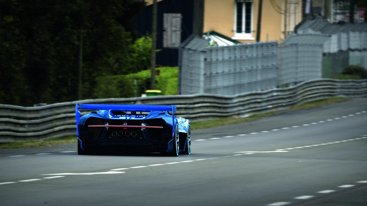 the engineers have calculated that the bugatti vision gran turismo can drive at over 400 kph (250 mph) on four sections of the virtual le mans track. "with our extreme speed on the long straights, we could make up for any disadvantages on the bends, and would then be as quick in the virtual world as the fastest real-life lmp1 race car, which, unlike us in the video game, naturally needs to comply with all fia and aco regulations," explains umbach.