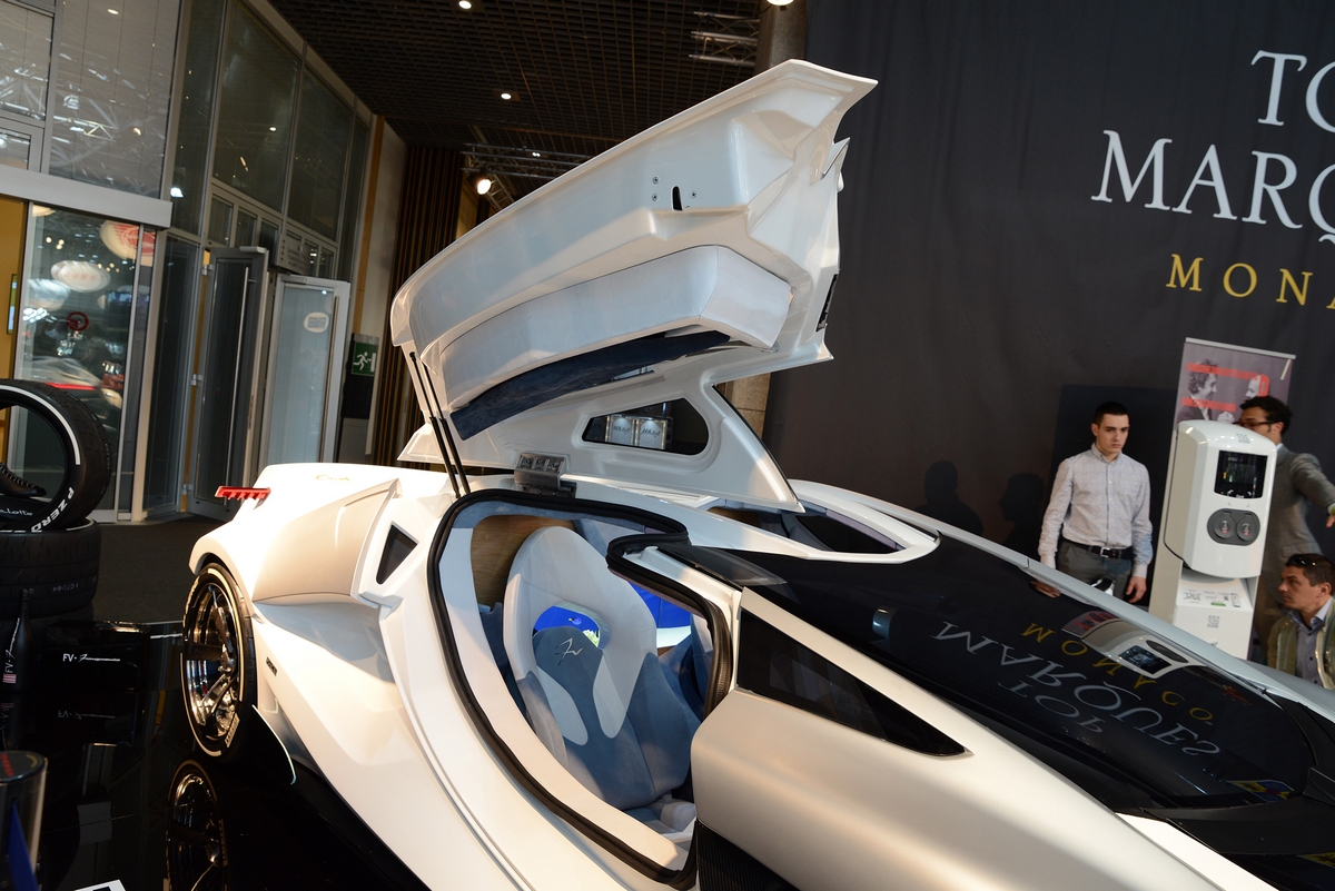 Among other stars on the showfloor was the unbelievable super automobile of the new Italian boutique manufacturer FV-Frangivento. This company established by innovative creators duo Giorgio Pirolo and Paolo Mancini presented first model - the Asfane - at Parco Valentino - Salone dell'auto Torino in 2016. At the end of last year they even took the car to the height of 2500m on the Tofana peak in the Dolomites UNESCO World Heritage Site.