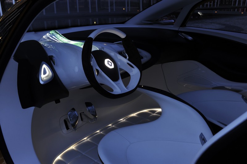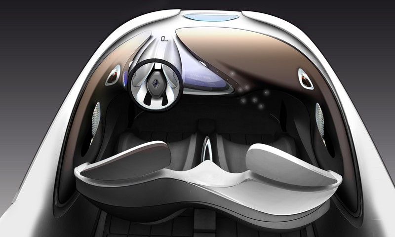 in terms of interior design, the family likeness to the dezir concept car is clearly visible at the front in the forms of the dashboard and seats. the driver enjoys a cockpit-like environment, with a section of the seemingly floating dashboard being specifically dedicated to driving functions. the interlinking movement suggested by the shaping of the front seat backrests is a return to the idea of a couple in love.