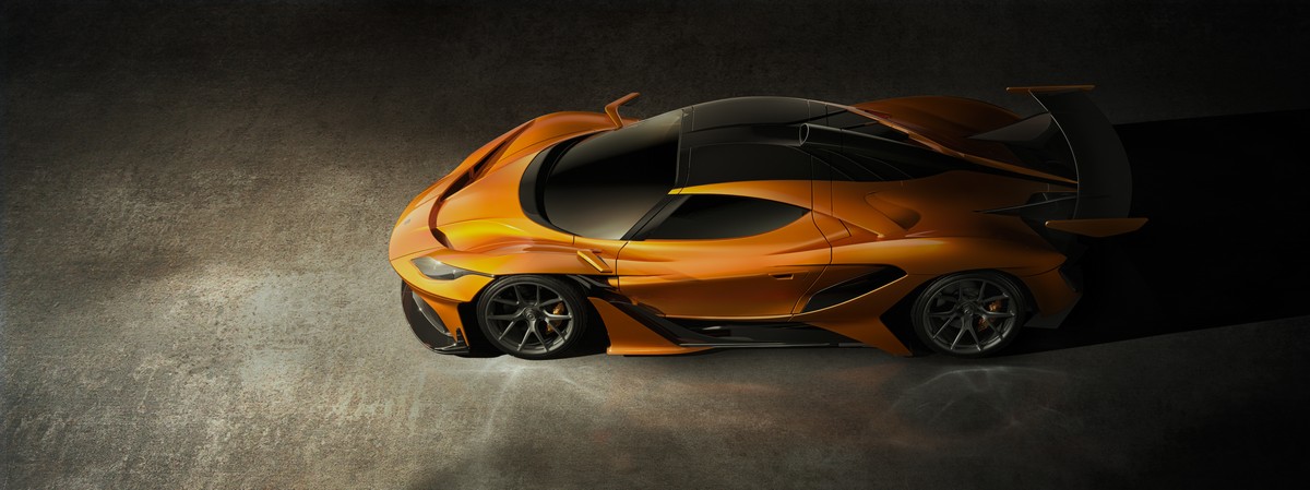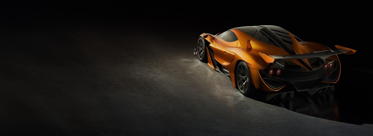 The entire vehicle exterior, including air ducts and the fuel and oil cap, are made from carbon. The metallic bright Wulfenite orange paintwork, which stretches from the bumper, across the wings to behind the door, ensures that the car will turn heads wherever it goes. Intricate details, such as the Wulfenite paintwork on the bottom of the rear wing and the interior of the striking double diffuser, further accentuate the car’s eye-catching design.