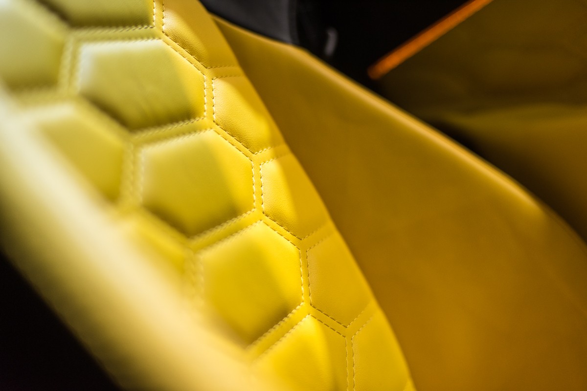 In order to meet the customer requirements of a 2016 hypercar we decided to create a completely new interior for the TS1. In decades supercar manufactures have developed driver oriented sport car interiors. For the TS1 we have taken this concept to a new level through highlighting the driver’s side with a contrasting colour. The interior of the hypercar has dramatically changed, from the seats to the dashboard and centre console. The new interior has unlimited customization options of leather, Alcantara, carbon fibre and aluminium finish etc. We oer our clients direct dialog with our design team in the process of designing every unique interior and in this way provide the option for our clients to become co-creators of their car.
