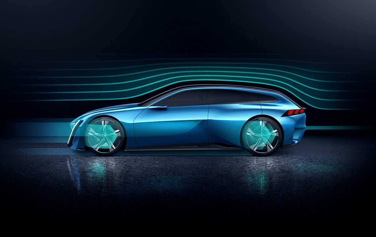 peugeot instinct concept is a shooting brake with a timeless look. active aerodynamic features accentuate the car’s flawless lines.
