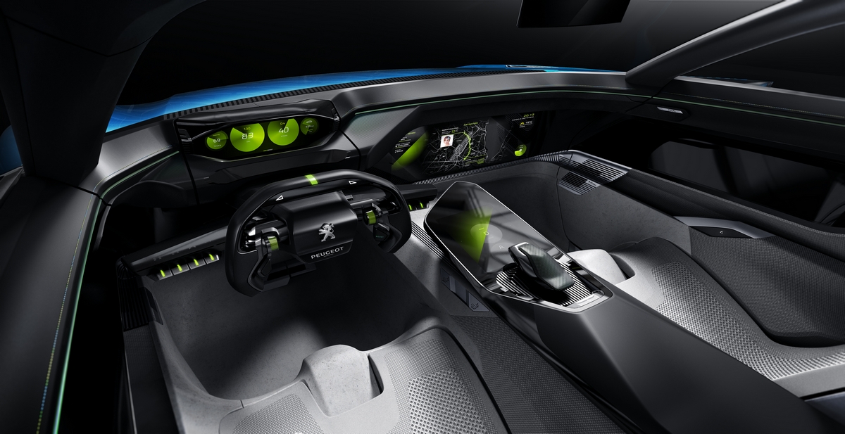 the driver retains control of peugeot instinct concept in all circumstances. in autonomous mode, drivers can give a command or make a manoeuvre via the i-device on the central console.