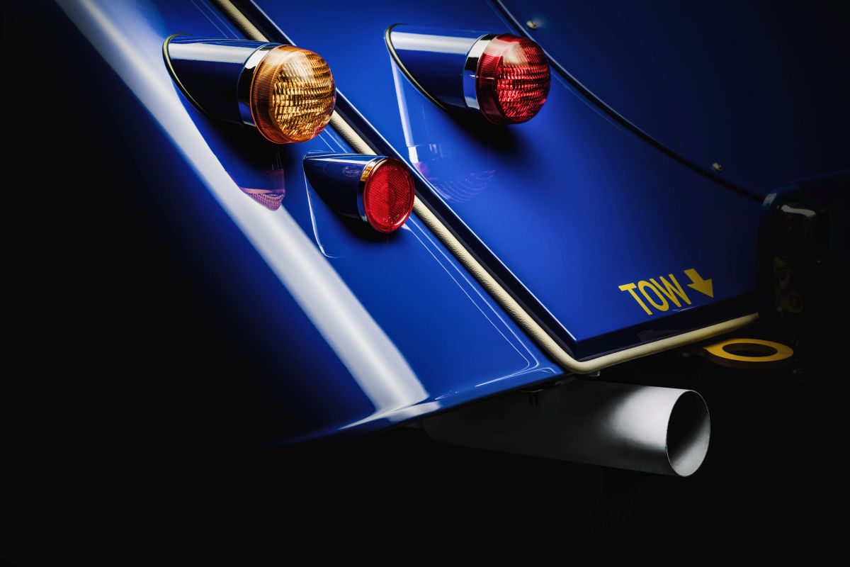 the teaser images released by morgan show a blue lacquered paint finish, reminiscent of the british coachbuilder’s first plus 8 production model (known as mmc11), with hints of hand-painted yellow accents around the car’s iconic front grill, along the bonnet and on the rear towing eyes.