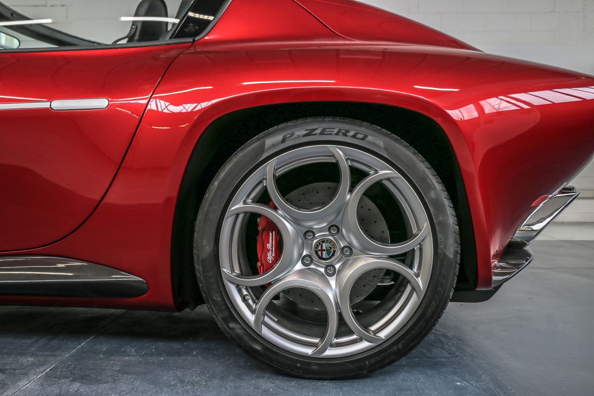 Sciàdipersia is built entirely by hand in the Touring Manifattura in Milan blending traditional hand-beaten panels with lightweight carbon fibre elements. Precision and quality of the body must match the most compelling standard, and cutting-edge digital measurement tools are used to this purpose at each stage, from the panel fabrication through to the body-in-white and the finished car. The manufacturing process is completely documented and digitally logged to ensure repeatability.
