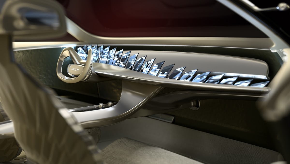 “It’s an immersive display delivering information on the car’s climate control, birds-eye navigation, drive and media systems. The screens will also display a raft of Kia concepts from years gone by to create an emotional link between past, present and future,” says Kluge. “With this arresting combination of artistry and information we’re drawing on memories of our past in a car that’s heading straight into our future.”
