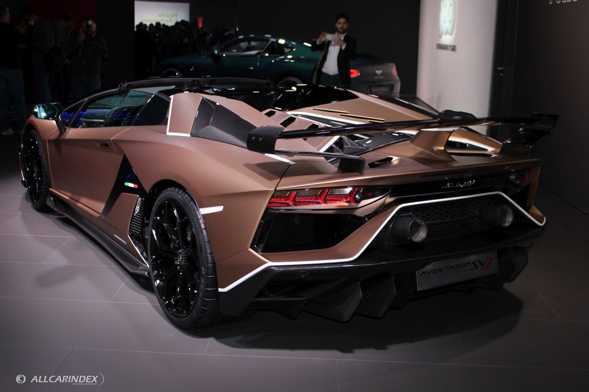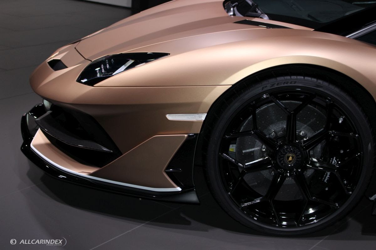 Just 800 units will be produced of the Aventador SVJ Roadster. The car shown in Geneva in the new matt color bronzo zenas (bronze) features a special Ad Personam livery in bianco phanes (white). The livery emphasizes the sharp lines of the front and rear bumpers and further enriches the specifically redesigned engine bonnet.