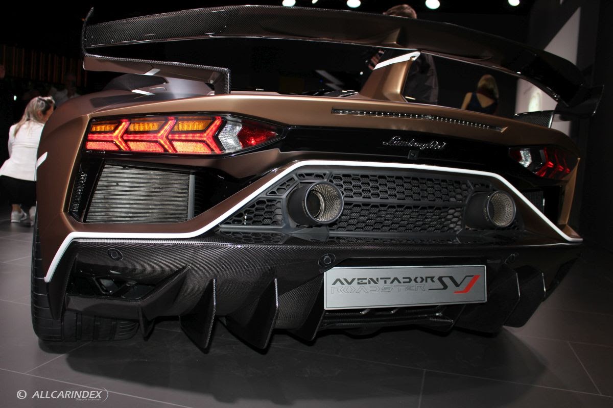 The V12 SVJ-enhanced powerplant, with titanium intake valve, new-shape intake runner and length, and modified intake cylinder head duct for higher flow coefficient, is visible through the lightweight carbon fiber rear engine bonnet, removable via quick release clips. The high- mounted lightweight naked exhaust produces the most emotive sound from the SVJ Roadster’s engine, adding to the experience of the roadster’s occupants.