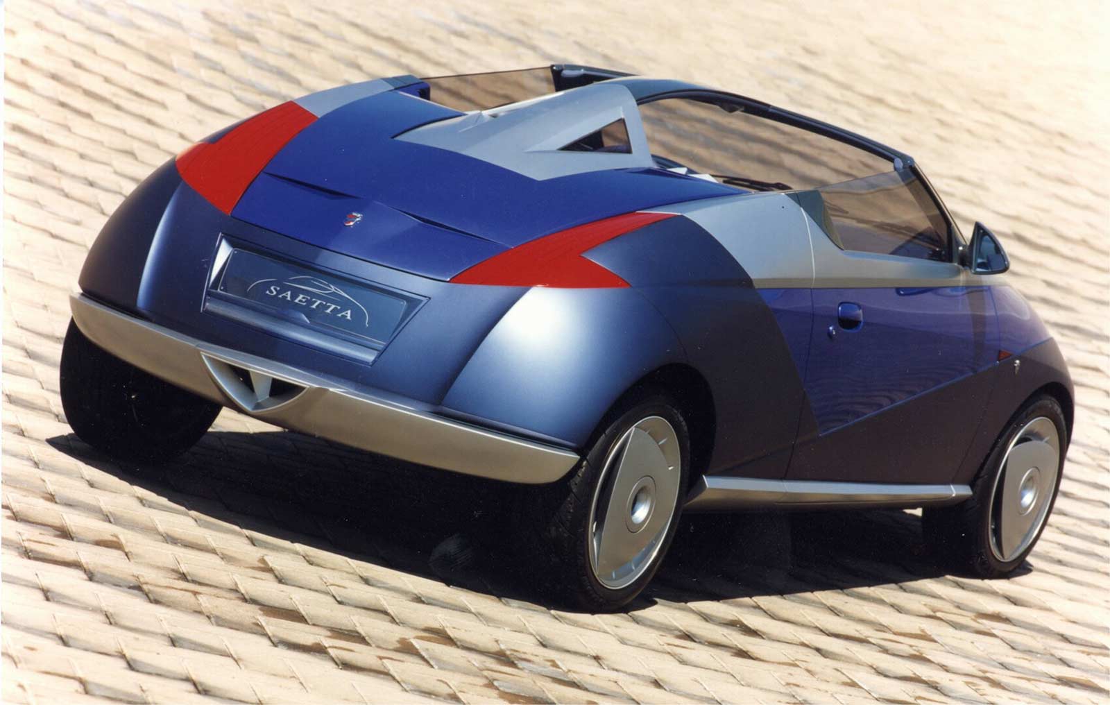 Filippo Sapino, managing director of Ford's Ghia design studio, sums up the Saetta's design ethos perfectly: "Our speedster concept explodes the myth that it's necessary to put a soft radius on everything to create an aerodynamic form."