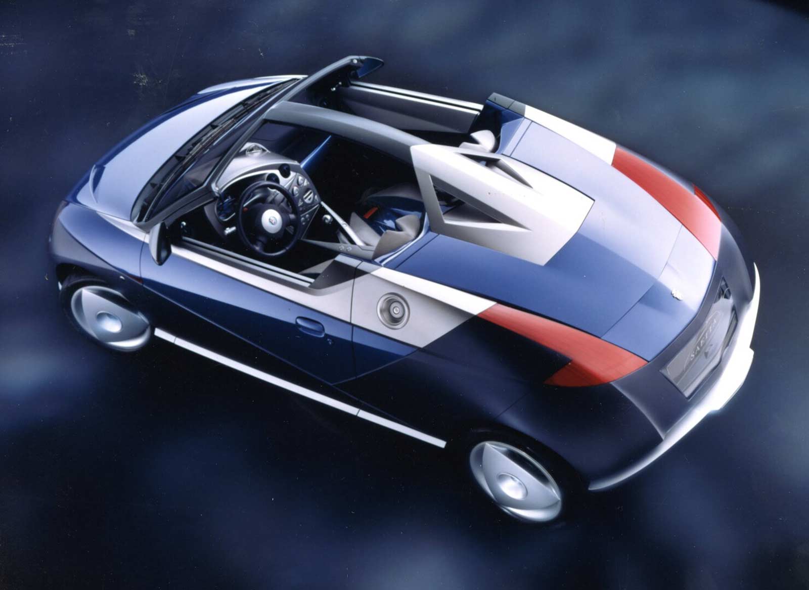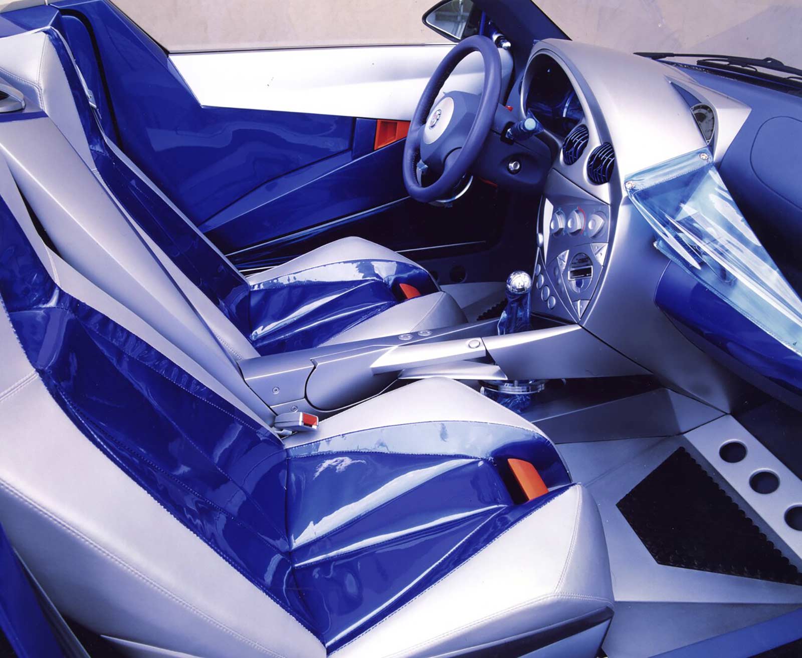 Built on the Fiesta platform, the Ghia Saetta features carbon fiber exterior panels and remote entry doors. The custom tread patterns on the 205/45R-16 tires add to the overall aesthetic of this bold and iconoclastic roadster.