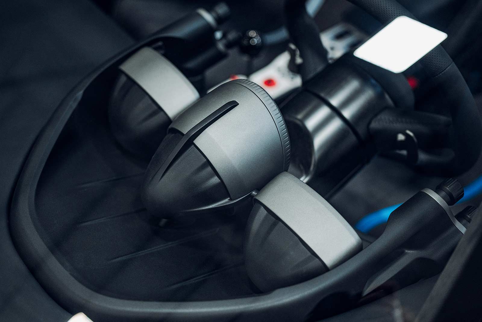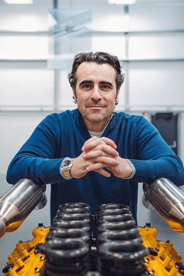 Addressing the fundamentals of high-performance engine design, the dry-sump, 3.9-litre unit features a 65-degree cylinder bank angle for optimum packaging within the monocoque, and contributing to the car’s low centre of gravity. Obsessively weight-optimised, the exquisite exhaust manifolds are crafted from inconel – lightweight and capable of withstanding extremes of temperature.