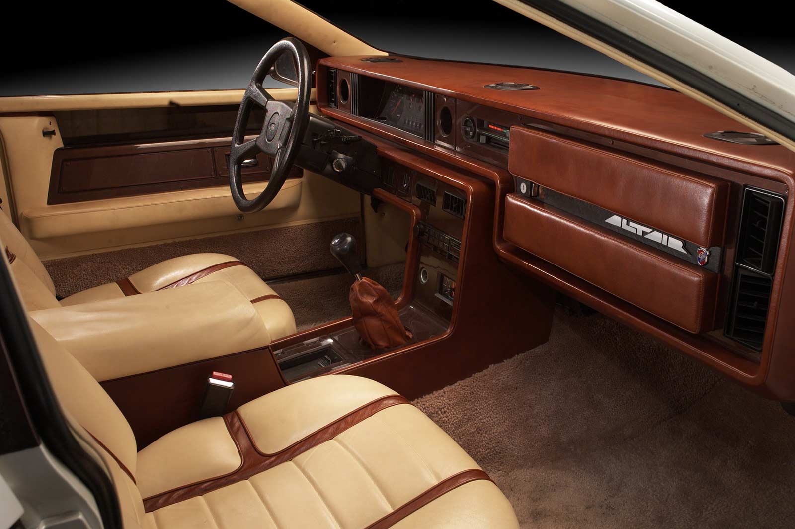 The exterior of the Altair featured a silver and bronze aerodynamic body with a predicted drag coefficient of .35, a significant improvement from the production model's .44. The front end was extended to incorporate an impact-absorbent front bumper and a deep aerodynamic front spoiler, while the overall height of the car was reduced to decrease the frontal area.