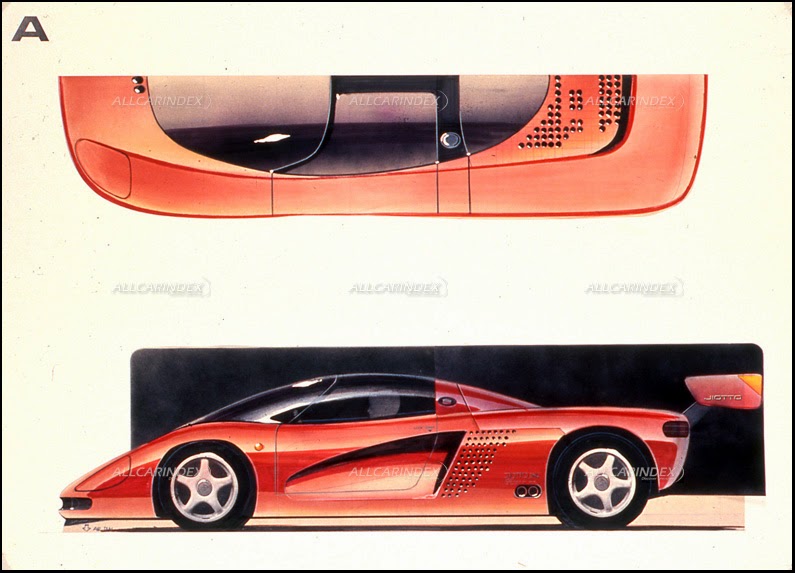 mr ito was a leading force in the design development of the jiotto’s supercar project. from the very early beginning the emphasis was placed on racing success and the japanese ideal supercar should have been a group c race car for public roads. sleek, aerodynamic lines are well stressed in the first sketches of the proposed car. noticeable aspect is a rear wing which was well conceived to flow into the rear end of the body. (see picture 2-3)