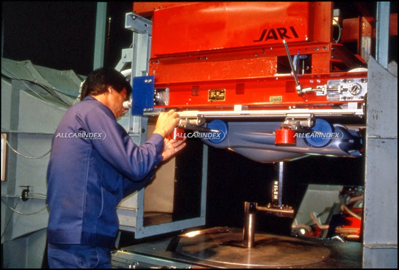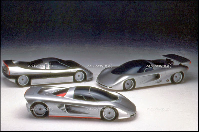 early design exercises were followed by a construction of 1/5 scale models for aerodynamic testing. first examples, however, were built as early as the first quarter of 1988! (see picture 6-7). further to that dome used its own as well as jari’s (japan automobile research institute) wind tunnel for experiments. the first ideas were tested during no less than twenty aerodynamic tests. initial proposals varied from neat to radical (see picture 5) but from more than 200 various sketches and drawings, jiotto design selected three designs for final development. all of them well accentuated a mid-engine structure with short, edgy front end, cockpit moved as forward as possible and rear zone to be occupied by a 12-cylinder power aggregate. all three of them were materialized in a 1/5 scale model form, as well. the trio was painted silver shade but their differences were highly significant. proposal a featured muscular emphasized front continuing through a mid-section to a massive rear end and forming an integrated rear wing. a huge side air vent was also a distinctive detail. proposal b among others was the closest to racing car. exhaust pipes were imagined on sides while it also had a large rear spoiler on the back. proposal c had a very sleek stance but not as muscular as the previous two. like the proposal a it had an integrated rear wing too, but on the third model it was much more aggressive and not such smooth. this example also showed a rather interesting side view with no large air vents as opposite to the first two designs. however, it was thought that the third design would not be much successful on track. thus, the finalist was the proposal a. jiotto design utilized jari’s wind tunnel to put finishing touches to the exterior styling and ran additional testing there (see picture 25-27).