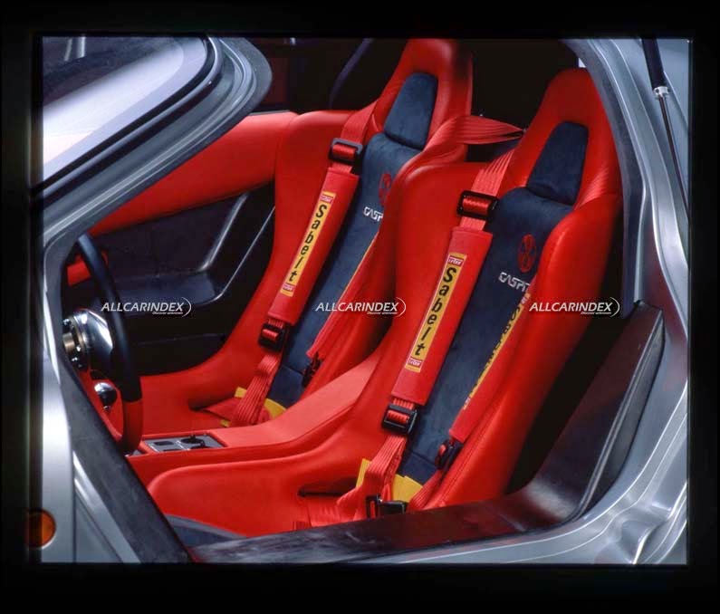 once the research on the exterior styling was established, jiotto design team led by mr kunihisa ito started researching supercars’ interior. likewise the exterior, cockpit design was also created through many various and much different styling studies. interior buck (see picture 38-39) was manufactured in early 1989 to better study and apply interior ideas. a chosen one was a sporty, functional but quite sophisticated. a tachometer with white digits was mounted centrally behind a lightweight twin-spoke steering wheel while all necessary switches were combined into the central console as well as dashboard. a smaller electronic led speedometer and fuel gauge was placed on the left. apparently, red and black accents were moved straight from the sketch to the actual car (see picture 28). the small lcd display was mounted for information on fuel and oil pressure. that’s it. no air conditioning, gps navigation, internet connection, cell phone charger and no cup holders. this may sound as a true spartan car, but it had to be driver’s car – a real high performance vehicle, a road-legal racer.
