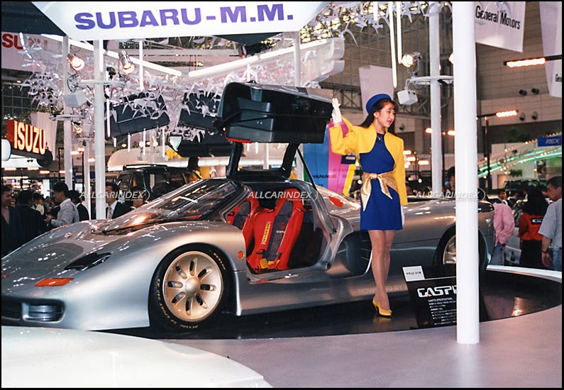 a true supercar of the late ‘80s received the named caspita. this is an italian exclamation word meaning “good heavens!” used to express a huge unexpected surprise. it was indeed a surprising premiere at the 28th tokyo motor show (see picture 48-49). standing next to such amazing concept cars like mitsubishi hsr-ii, isuzu 4200r or even ferrari mythos by pininfarina, the jiotto caspita was proudly a japanese super sportscar. painted in an adorable pearlescent shade it was a star of the show as well as its power source demonstrated next to it. on display of the subaru-motori moderni stand, the caspita was a truly compact supercar. mr ito managed to design such a brilliant automobile which being just 4534mm long would well accept a 12-cylinder engine! gorgeous. with a wheelbase of 2700mm, width 1996mm and height of 1136mm it was a heroic 4-wheeled sculpture looking even more majestic with both gull-wing doors being opened.