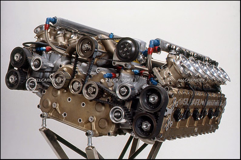 hiding under the skin was a truly amazing piece of engineering. this is where the third partner – subaru - stepped into the project of this japanese supercar. precisely subaru’s f1 engine (see picture 67-68) co-developed with italian company motori moderni was detuned to 450hp. this outstanding 3.5-liter flat-12 horizontally opposed power aggregate designed by carlo chitti was well fitted onto the aforementioned carbon composite structure. a maximum power as well as 363 nm of torque was transferred to rear wheels through a 6-speed gearbox built by american company weismann which at that time also served mclaren f1 team. this vast amount of power was connected to the road through huge tires – 245/40zr17 in front and even 335/35zr17 on the back. in addition to that, the clearance could be increased hydraulically from 7cm to 13cm!