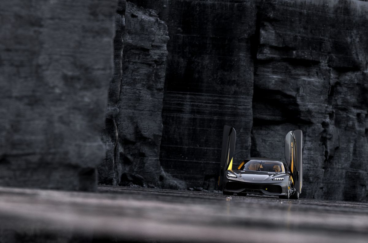 The front design is inspired by the first-ever Koenigsegg prototype – the Koenigsegg CC from 1996.