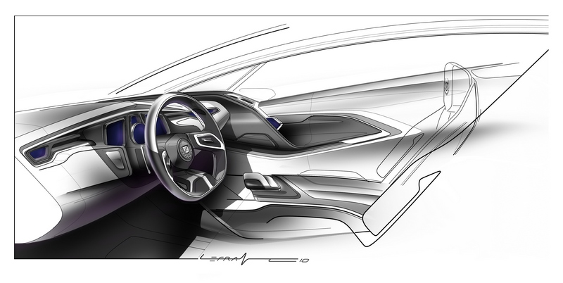 The conventional “center stack” of controls is replaced by a divided interface that creates more space at the forward section of the interior. A pair of projected readouts flanks a large, prominent analog speedometer reminiscent of a high-end time piece, assisted by a high-definition head-up display. Capacitive multi-touch switches throughout the interior ensure seamless and intuitive electronic control.