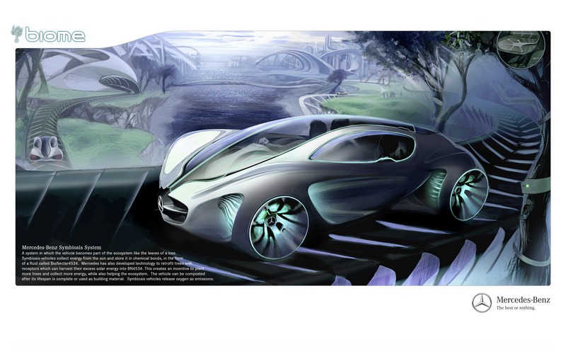"As the inventor of the motor car, we wanted to illustrate the vision of the perfect vehicle of the future, which is created and functions in complete symbiosis with nature. The Mercedes-Benz BIOME is a natural technology hybrid, and forms part of our earth's ecosystem. It grows and thrives like the leaves on a tree" according to Hubert Lee, Head of the Mercedes-Benz Advanced Design Studios in Carlsbad. This year the competition had called for the creation of a vision of a safe and comfortable 2+2 compact car featuring good handling and a first-class design, and weighing only 1,000 lbs (around 454 kg/kerb weight).