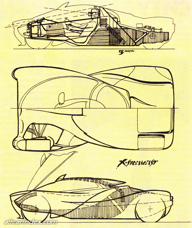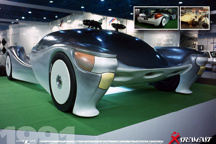 This is the project of a car with such an unexpected name, which has been prepared by a Moscow limited liability company called Mart Limited. At Avtoindustria-92 exhibition they have presented a sensational exhibit – a mock-up of the first domestic supercar. Ferrari F40 and McLaren F1, Audi Avus and Lamborghini Diablo, Jaguar XJ220 and Yamaha OX99-11 – these famous concepts have now been followed by a Russian car called X-Streameast. Here is a story about the car told by Mart Technical Director – A. Zacharov.