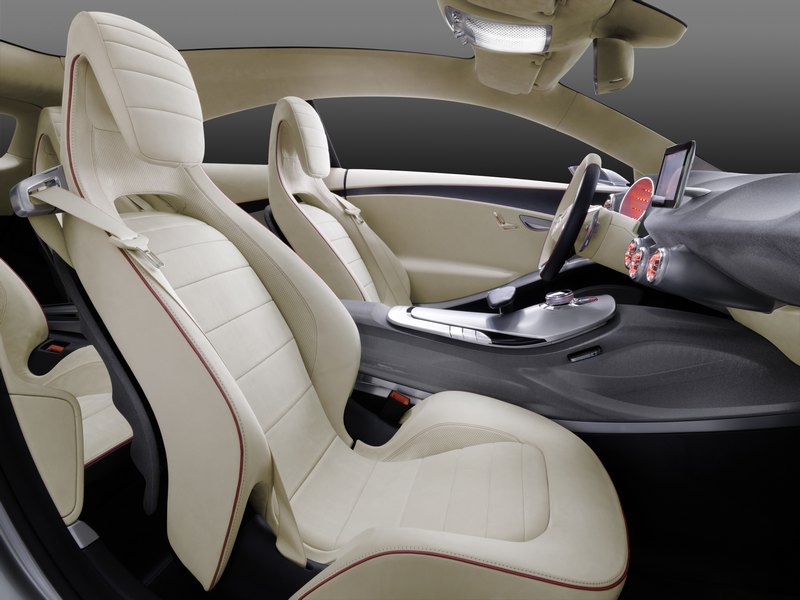 the shape of the air vents in the dashboard is reminiscent of a jet aircraft engine. the prominent displays in the instrument cluster are in red. their appearance is inspired by the afterburner of a jet engine. the central control unit is designed as a modern flight panel, with the shift lever taking the form of a "reverse thrust control".