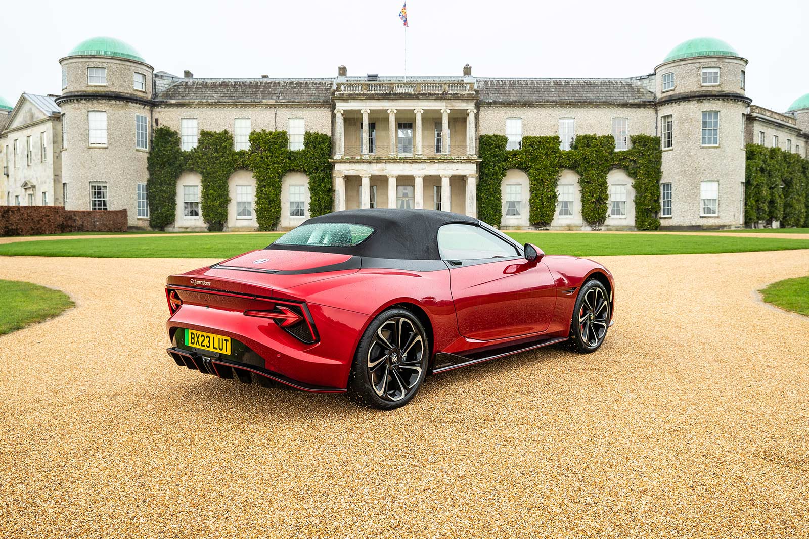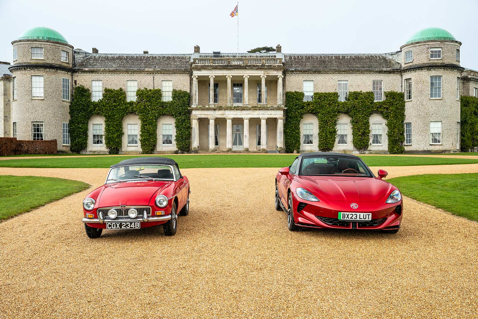 To kick off the partnership with the Goodwood Festival of Speed, the Cyberster was joined by a classic 1964 Mk1 MGB Roadster with a 1.8-liter BMC engine outside Goodwood House. This nostalgic pairing of MG roadsters from different eras sets the stage for a memorable showcase at the Festival of Speed.