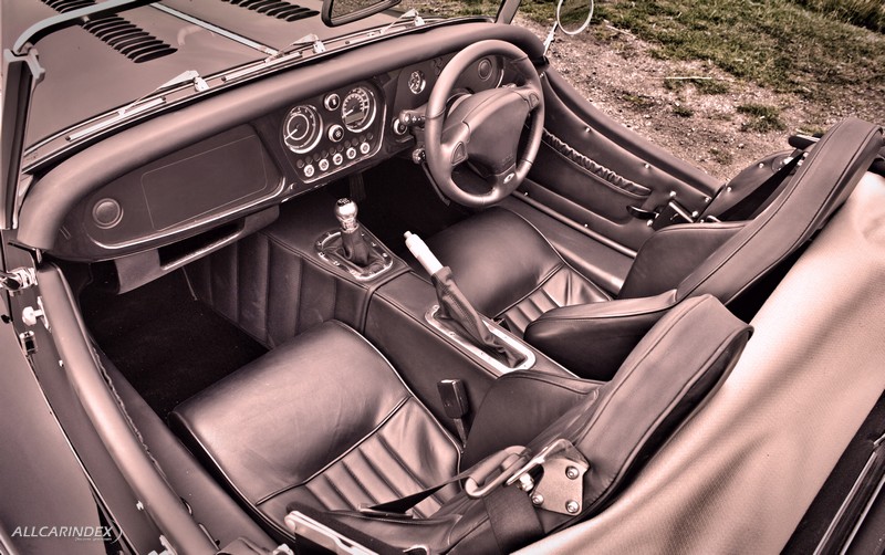 the cockpit offers the perfect enthusiastic driver’s environment with plenty of room combined with the luxury and special feel of real leather. the large well designed speedometer and rev counter are fitted into a completely new dashboard featuring electronic warning systems and digital and analogue displays for all engineering functions. there is even a stop watch to measure your lap time. the instruments and dials are framed in wood and the highest quality materials are used throughout this coachbuilt car.