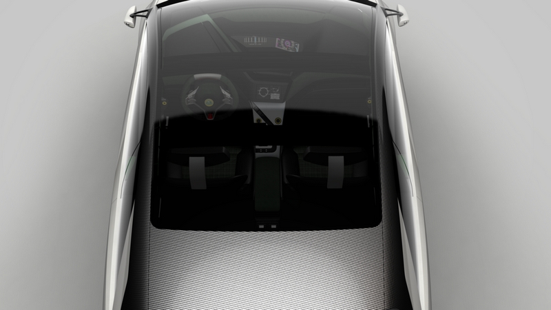 A dramatic glass roof is incorporated into the design to further increase visibility; under the glass roof the interior is upholstered in a luxuriant green and yellow tartan fabric and immaculately finished with a technologically advanced Lotus steering wheel. The high specification of the Lotus City Car concept is emphasised by the mix of carbon fibre, sumptuous leather and high quality equipment.