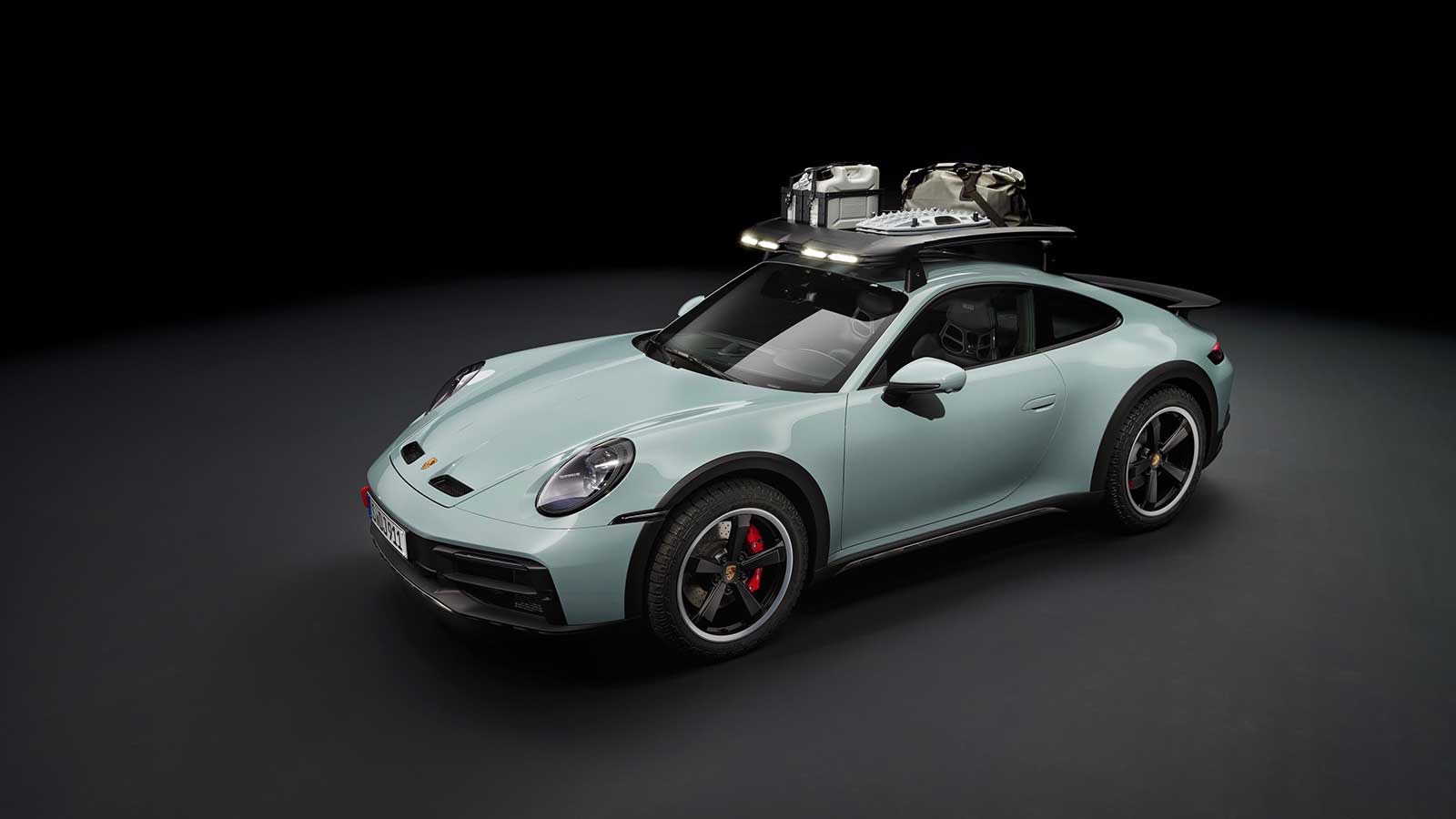 Optionally with roof basket or roof tent as well as Porsche Design chronograph