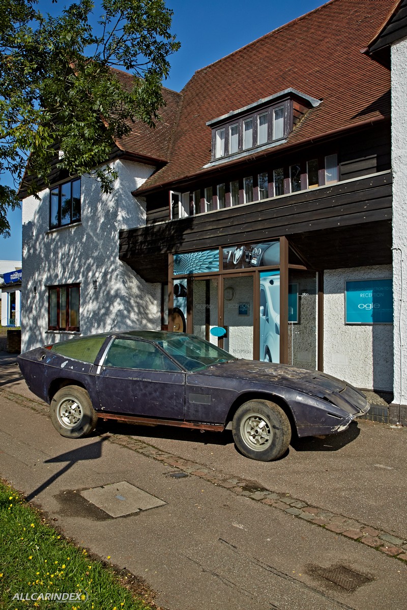 - ogle-designed, futuristic show car based on an aston martin dbsv8, first showcased at the 1972 geneva salon and montreal motor show