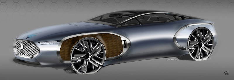 the ideas of simplicity, a visually- and aesthetically-pleasing structure, geometric elegance and mastery of light guided the designers in the creation of the coupé corbusier concept car.