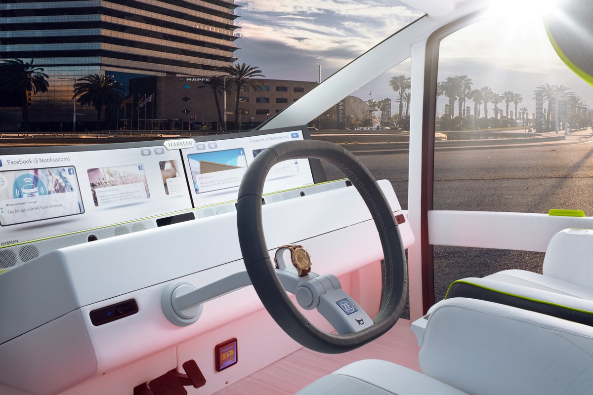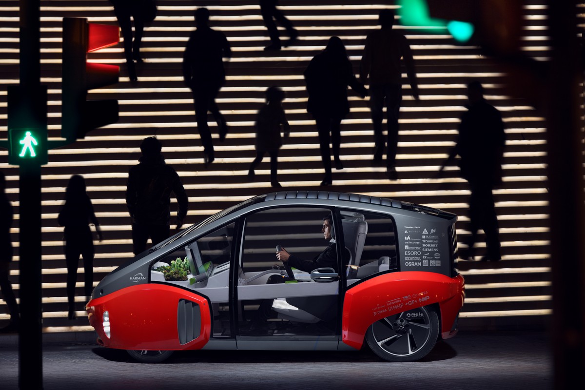 the next business trip begs. after dropping its owner off at the airport, the “oasis” chauffeurs a nice couple who had searched for a ride on facebook into the city. after dropping them off at their destination, the “oasis” goes on twitter to let the owners’ friends know that it is available for use at any time. they are able to summon it via whatsapp and other social media apps. two days later, the “oasis” returns to the arrivals terminal of the airport, thanks to harman livs punctual to the minute and unperturbed by potential flight delays, traffic jams and long lines at the baggage claim.
