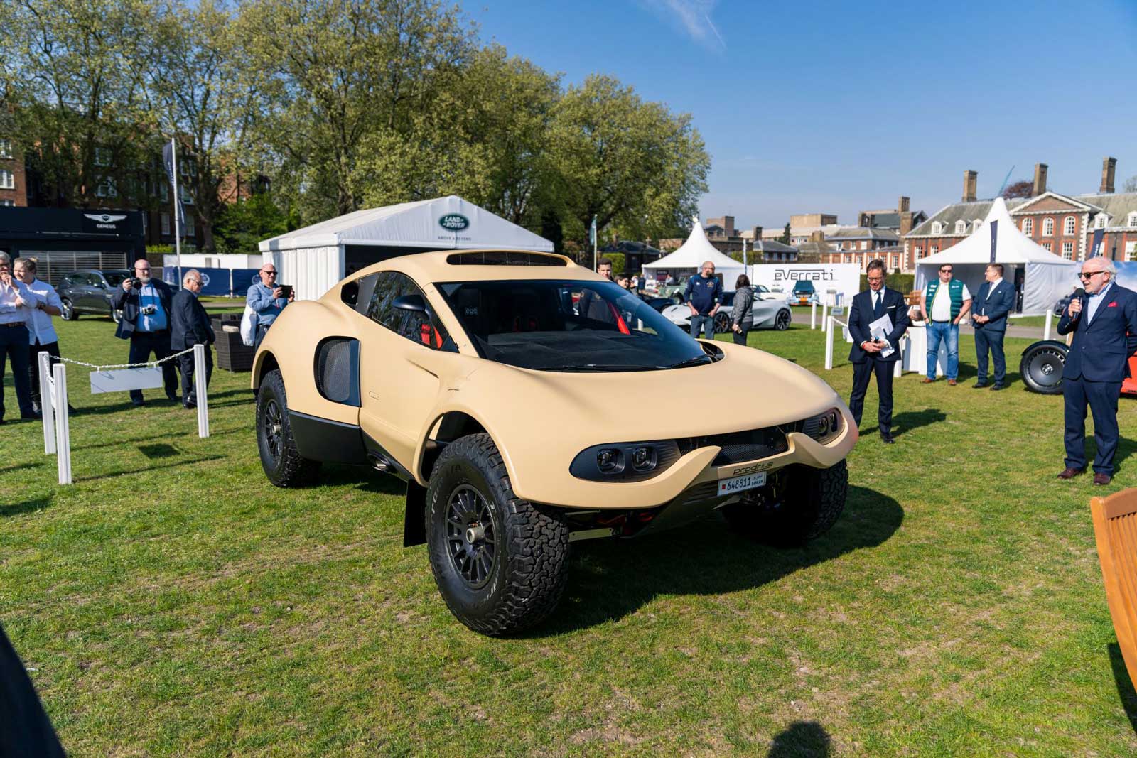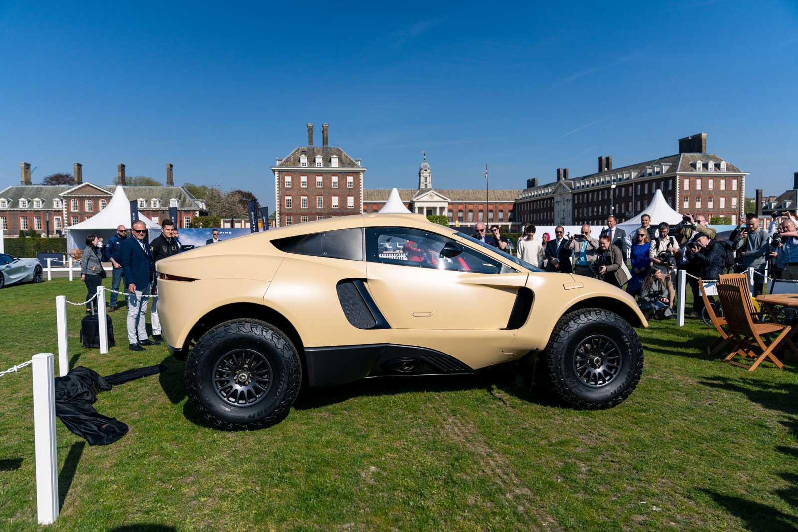 The spectacular new Prodrive Hunter made its public debut at Royal Hospital Chelsea, with Prodrive’s chairman David Richards unveiling the world’s first all-terrain hypercar. Developed from the Bahrain Raid Xtreme competition car, driven by nine-times World Rally Champion Sébastien Loeb on the world’s toughest motorsport event – the Dakar, the four-wheel drive all-terrain adventure vehicle uses a 3.5-litre twin-turbo V6 engine that develops more than 600bhp.