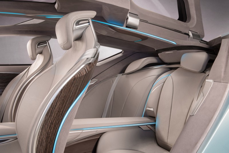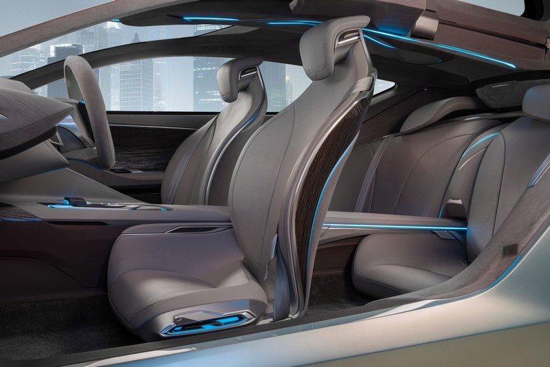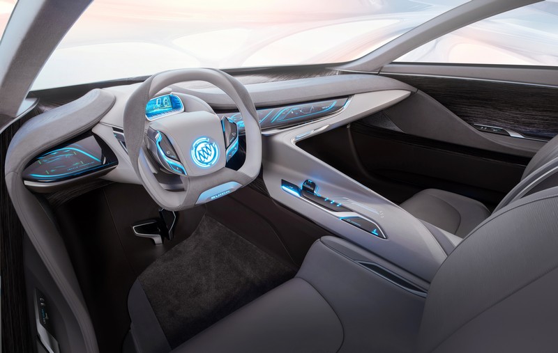 up front, the concept vehicle’s updated waterfall grille and wing-shaped daytime running lights will both become key elements of buick's future design dna.