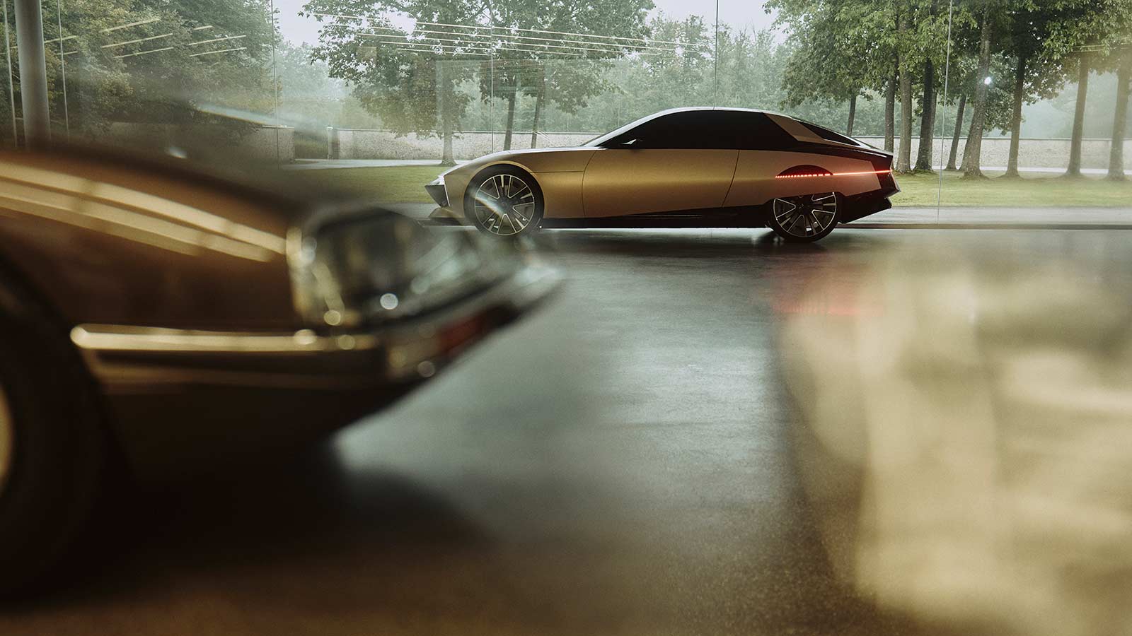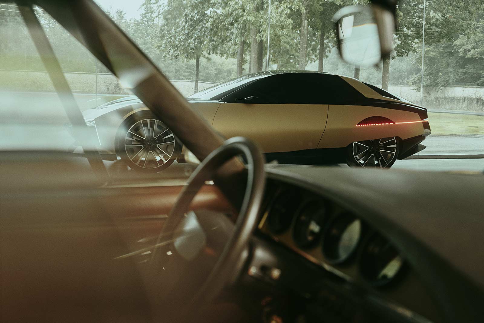 The SM TRIBUTE's interior also honors the original 1970 model while embracing cutting-edge technology. Retaining the iconic dashboard design with its circular instruments, the new version introduces modern elements like projection-based information displays and a curved "screen console," creating an immersive, futuristic driving experience.