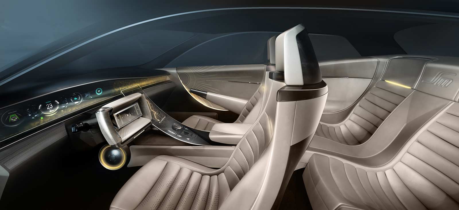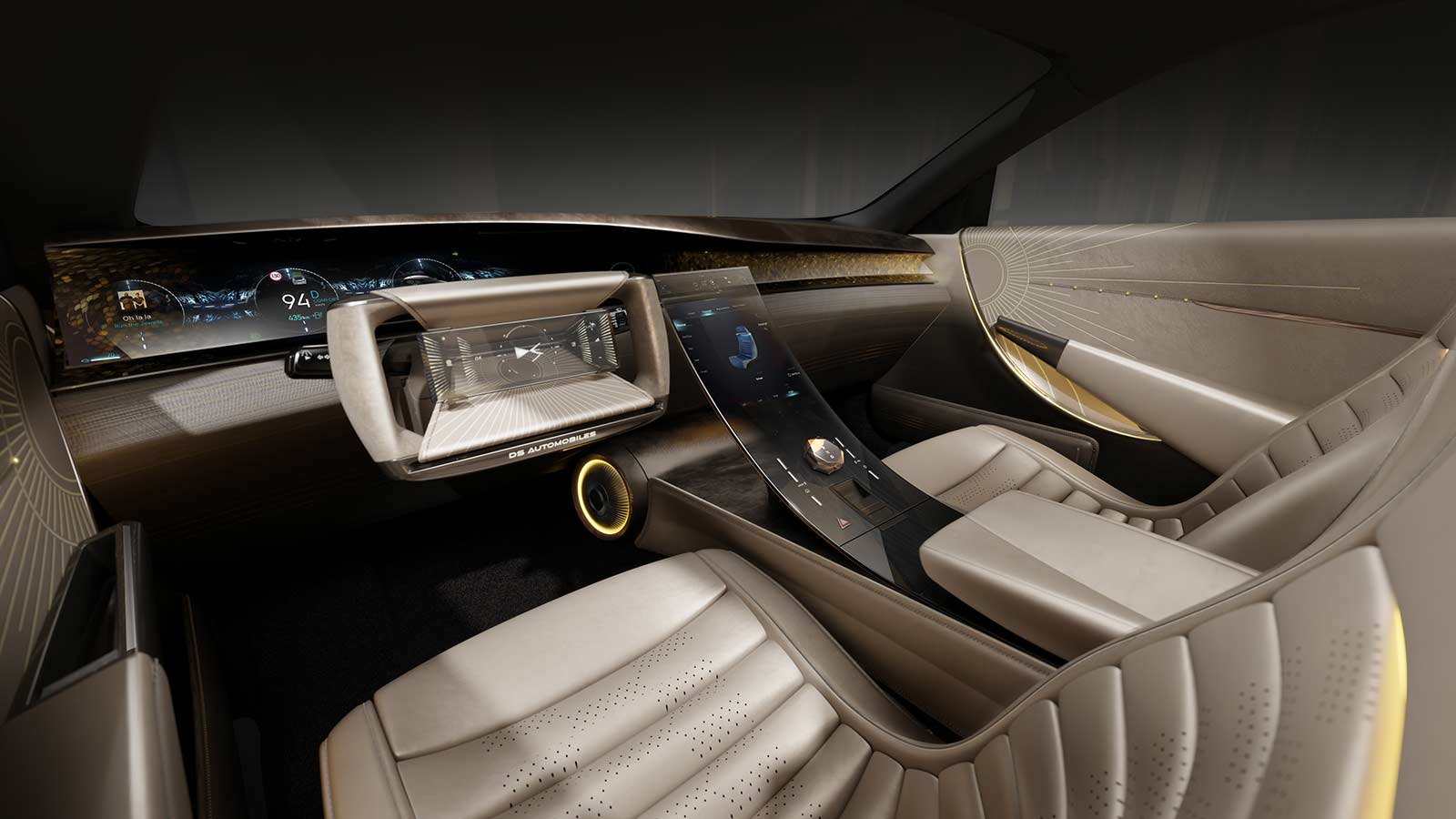 The luxurious materials, including ivory-colored leather and Alcantara®, give the cabin an opulent feel, while laser-engraved leatherwork on the door panels adds an artistic touch. This blending of decorative arts and automotive design is a hallmark of DS Automobiles' approach, according to Vincent Lobry, Head of Color, Materials, and Finishes (CMF) Design.