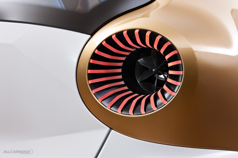 the jet-like rear lights are reminiscent of small aircraft turbines and give the rear a futuristic and sporty look. inside the lights, small propellers convey the air from the inside to the outside. in addition to all the light functions needed, transparent stacks in the form of rings around the lights also show the charge status of the battery during charging.