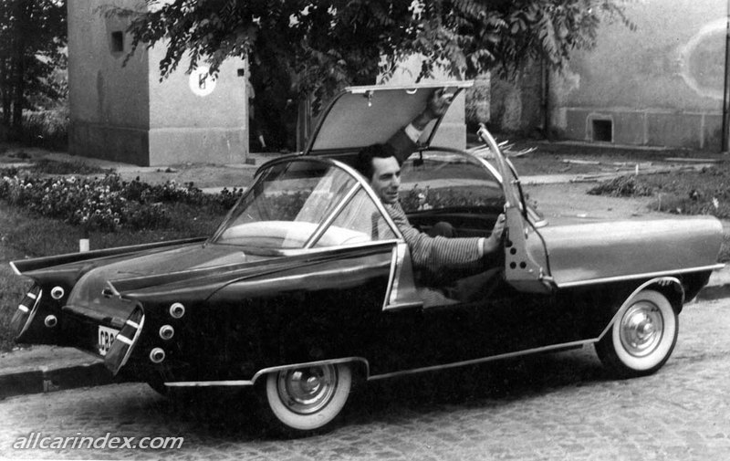 As recycling was all the rage then, he, together with his advisor, DezsQ Olly came up with a novel idea for the body: a resin made out of pig's blood, chicken feathers and nitro shellac!! It had quite a smell, but it worked! It wasn't as elegant as GRP, but it worked. Kálmán used the car for a few years (in the process it was repainted and received an automobile number plate, instead of its orignal, "motorcycle with a sidecar" plate) then sold it. Its attractive body was eventually replaced with a van body but after a crash it was disposed of.