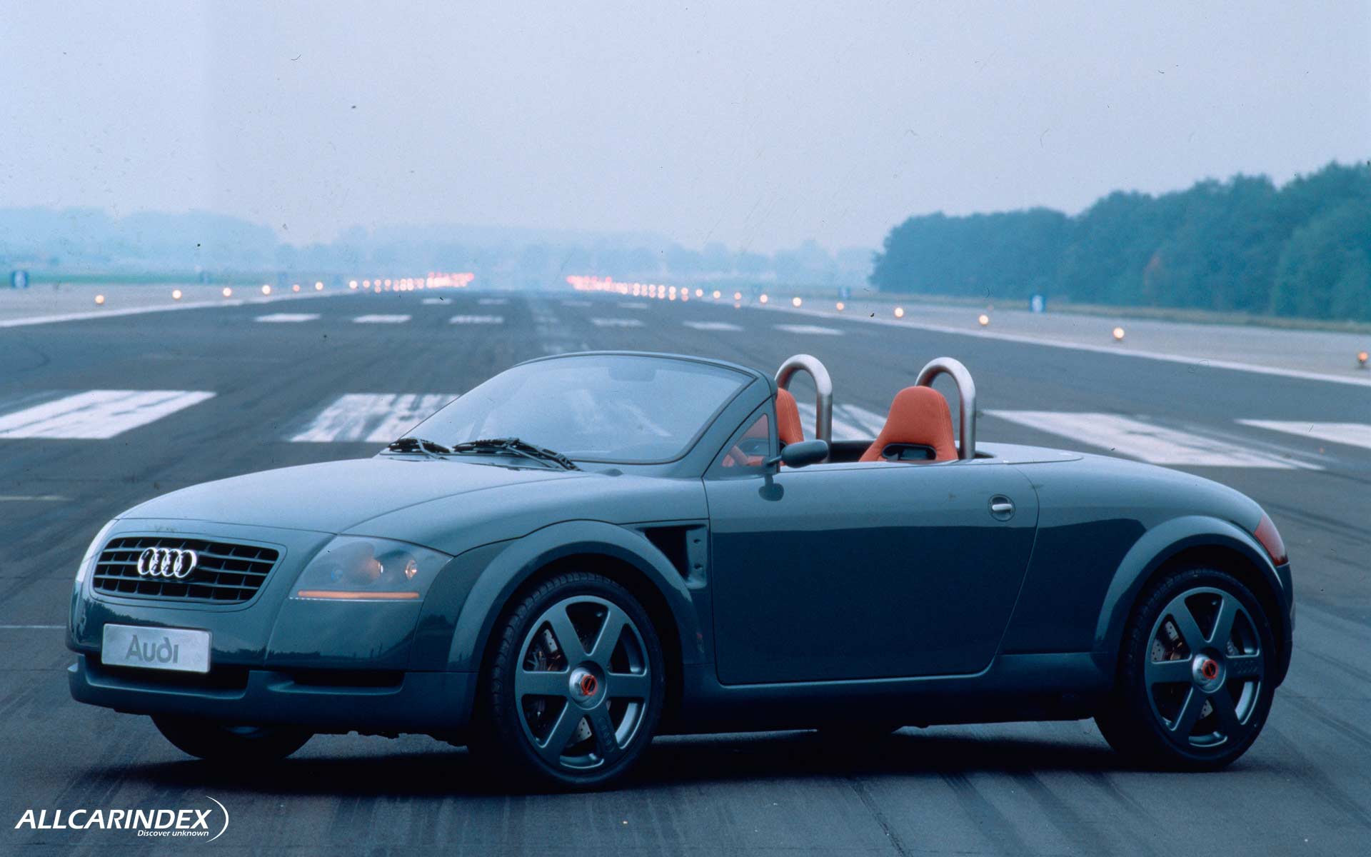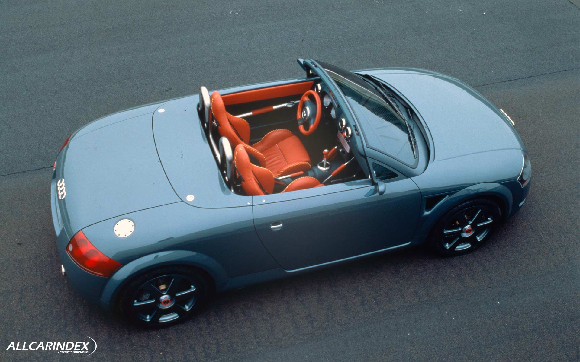 One of the most captivating ideas of Audi's young, avant-garde team of designers and engineers, the TTS Roadster featured an open body styling with fixed, integral roll bars and a fabric soft top that could be stretched tent-style. The engine, denoted by the "S" in the "TTS" badging, was a concept study for a powerful sports version of the 1.8-litre turbocharged unit, producing 154 kW (210 bhp) and 250 Nm of torque for vigorous pulling power.