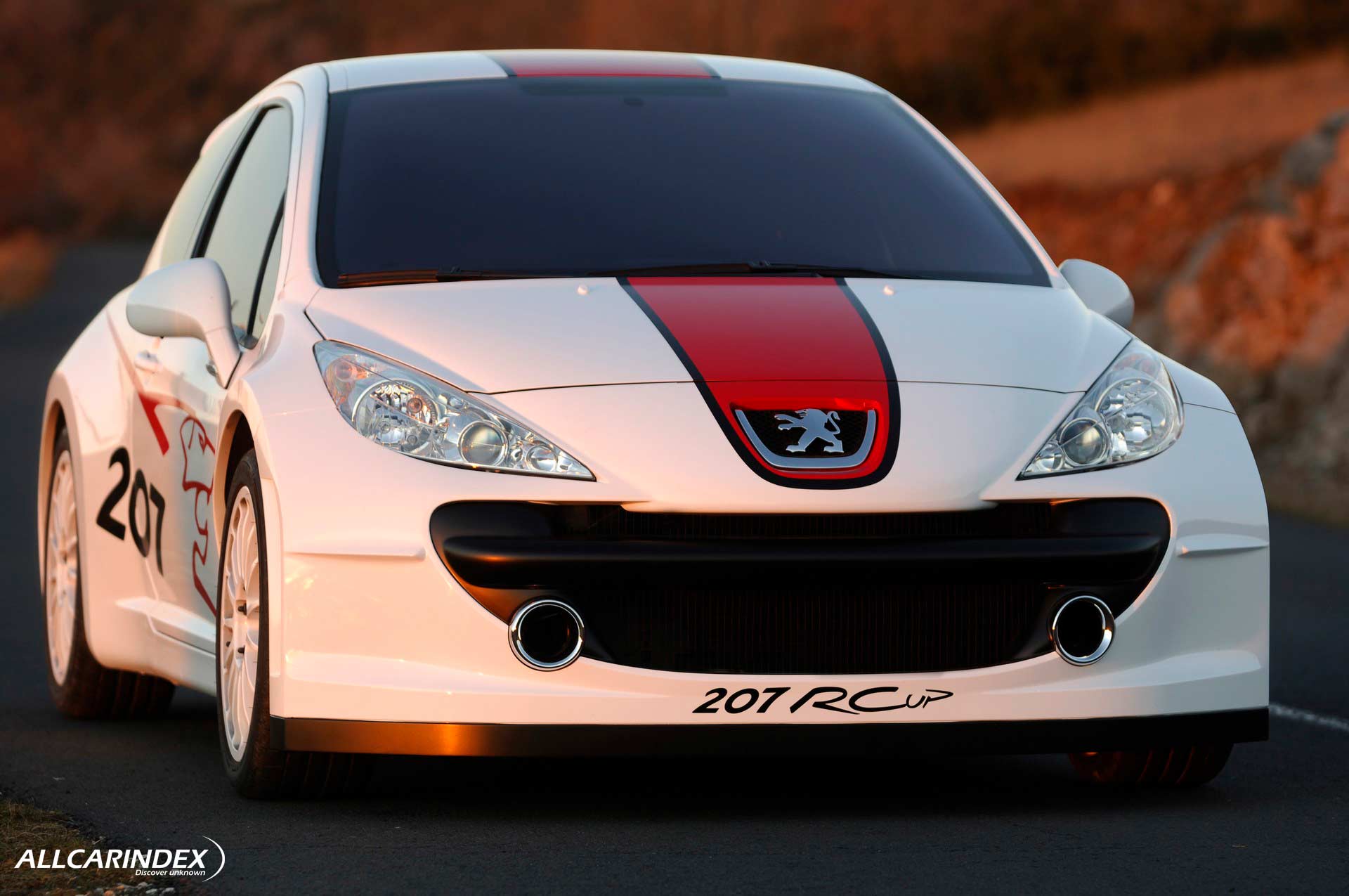 The exterior of the 207 RCup was characterized by a central red stripe running along the length of the body, drawing attention to the flowing lines of the pure white body. The red stylized lion's head motif on the sides further emphasized the intensity of the overall shape of the vehicle. With sportier front and rear wings, a wider track, unusually large wheel arches, and reduced ground clearance, the 207 RCup boasted a strong aerodynamic design that made it appear ready to take on any challenge.
