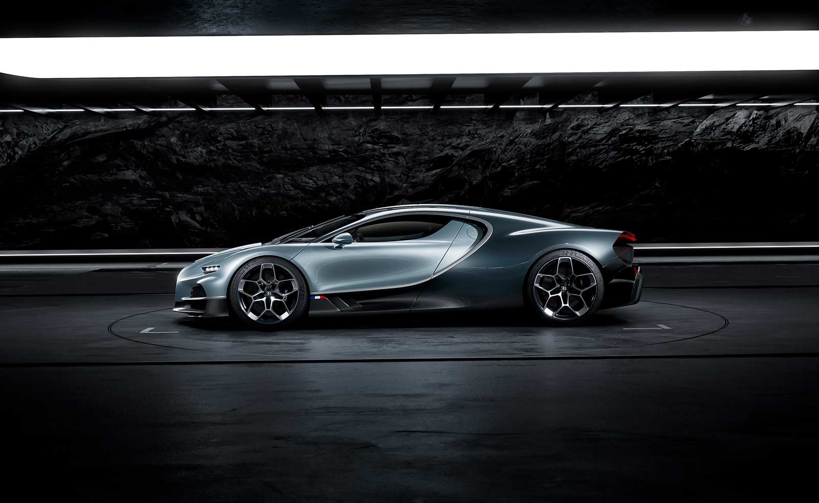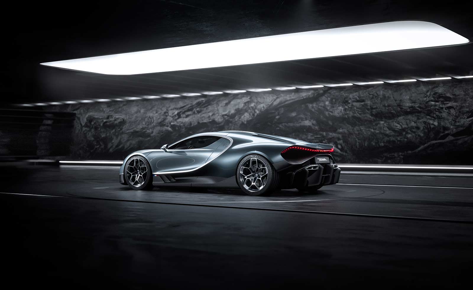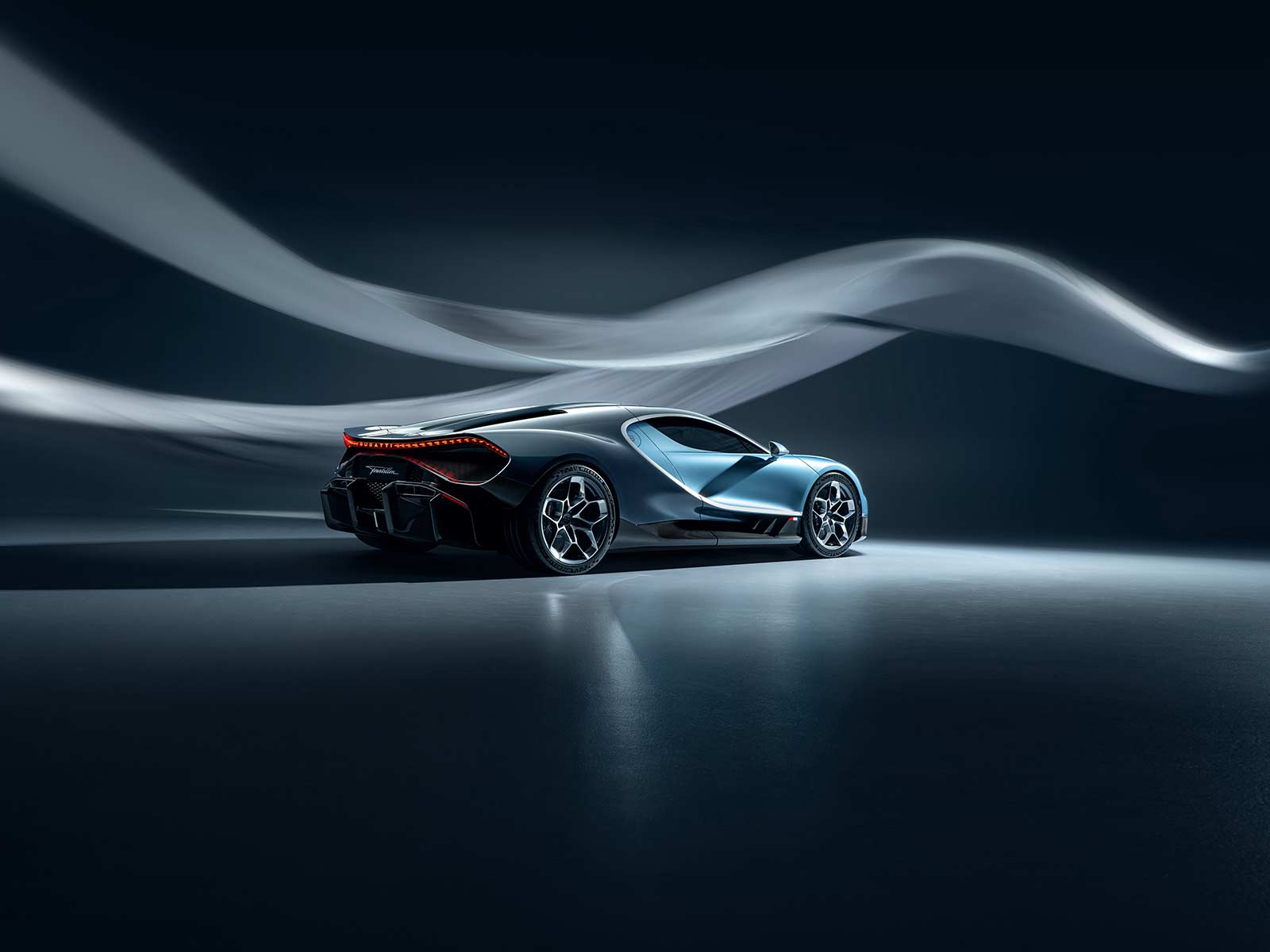 The Bugatti Tourbillon is built on an entirely new chassis and body structure, utilizing next-generation T800 carbon composite and innovative weight-saving techniques. Its multi-link suspension, 3D-printed structural components, and advanced aerodynamic features contribute to a driving experience that is both exhilarating and refined.