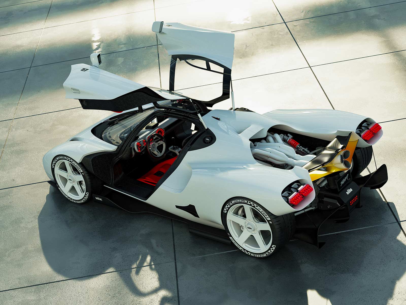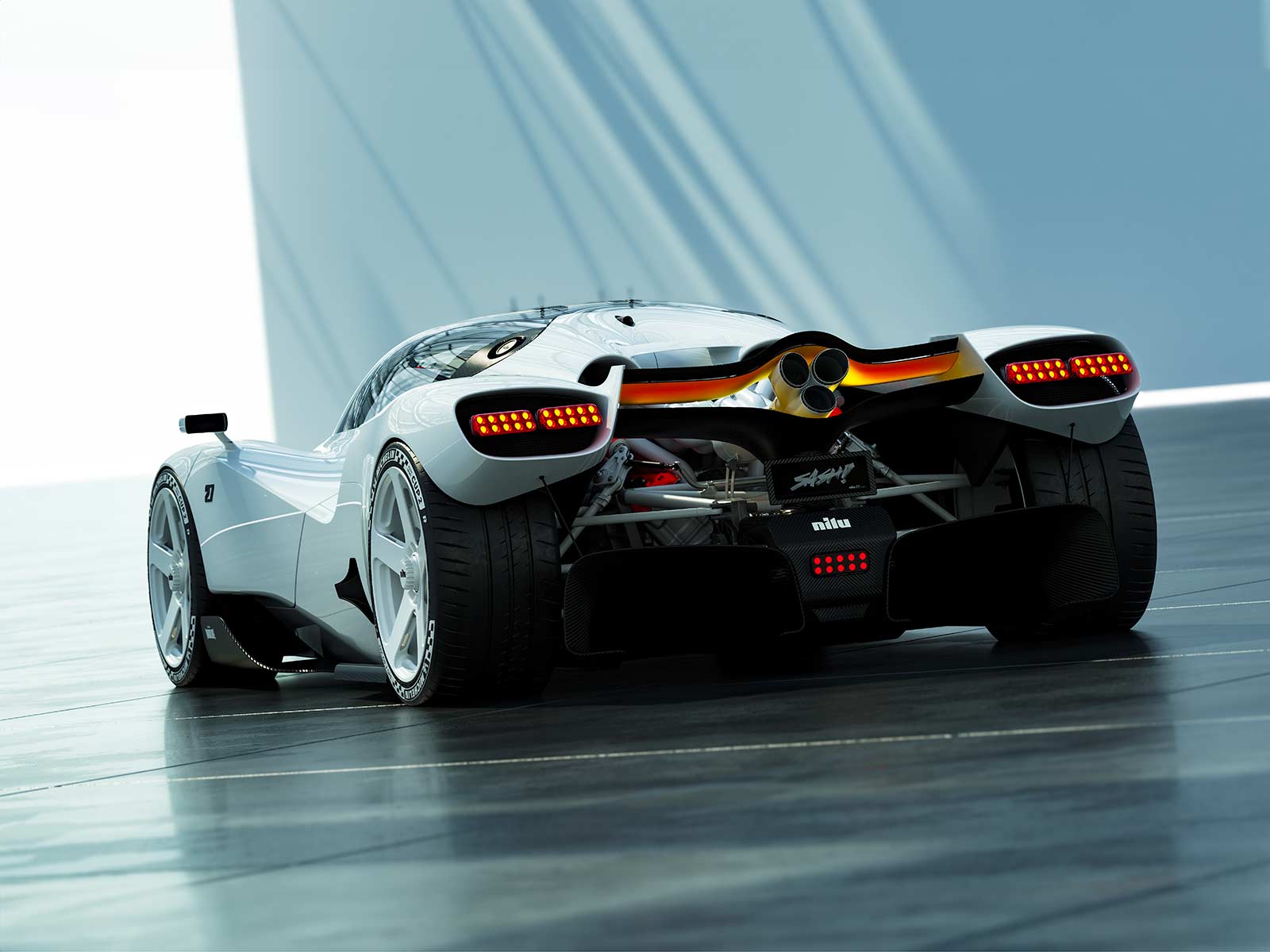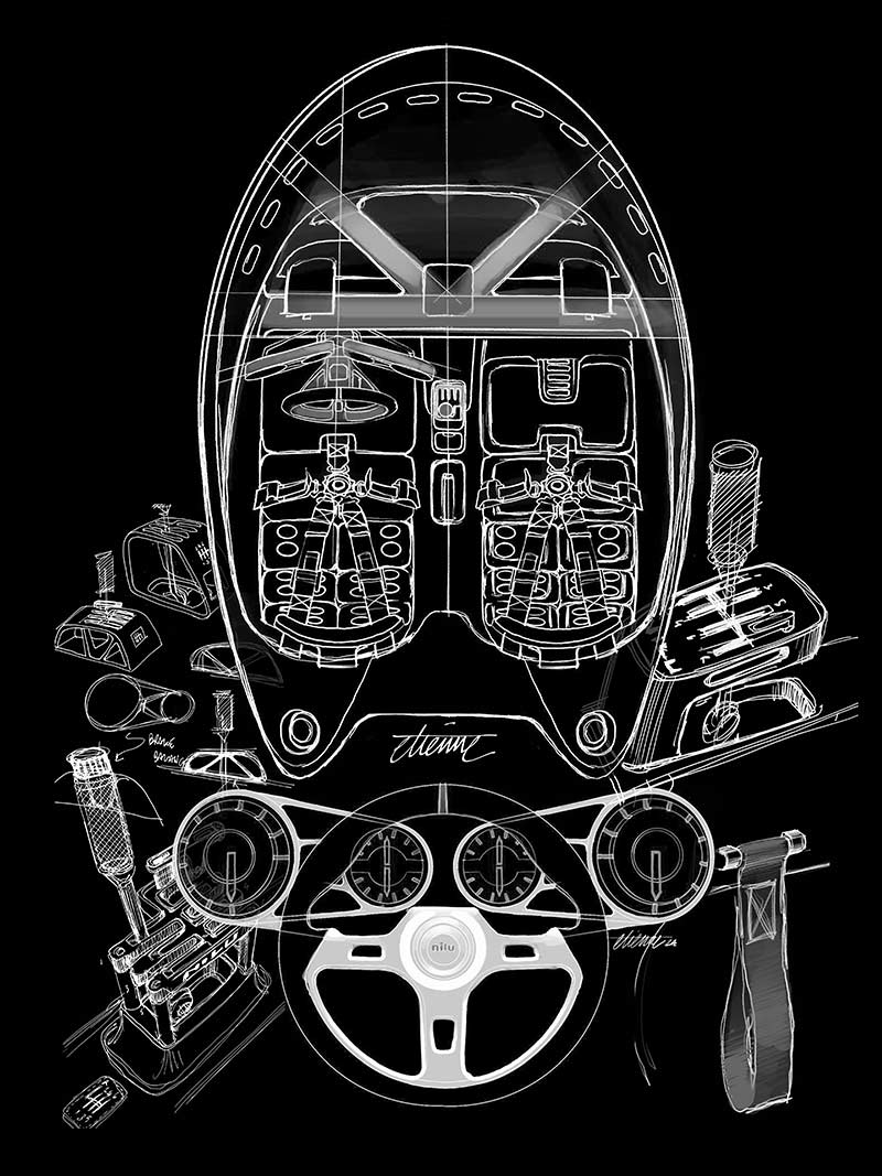 Inspired by a mélange of sources—from the iconic Formula 1 and Le Mans racers of the 1960s to the Bauhaus principle of “form follows function”—the NILU hypercar embodies an aesthetic that is both functional and artistic. Its exterior features tight cross sections and sinuous curves, delivering an aerodynamic profile while juxtaposing clean surfaces with an exposed, intricately detailed engine bay. This design celebrates a raw, mechanical beauty reminiscent of classic Italian and American muscle cars.