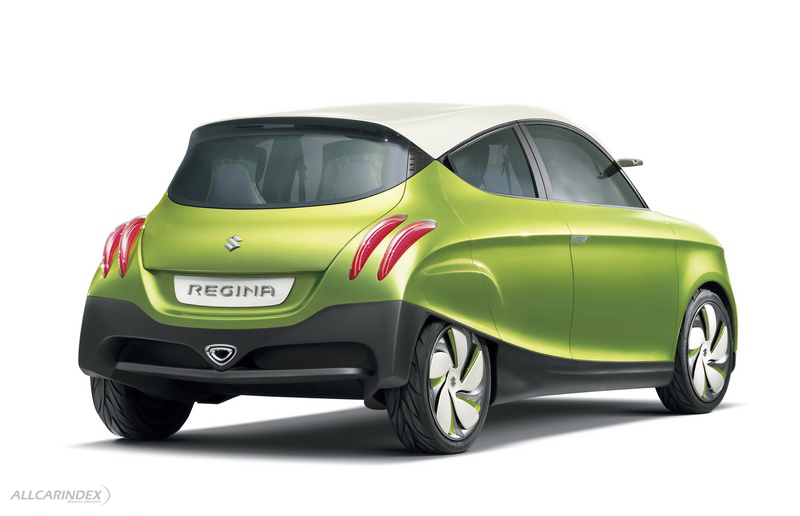 regina: a vision of a next-generation global compact car with excellent fuel efficiency and low emissions thanks to lightness and superior aerodynamics the regina embodies suzuki’s vision of a next-generation global compact car. it’s as light as a mini car (just 730kg) thanks to a clear focus on minimising weight. it has a drag coefficient at least 10% lower than that of current models thanks to uncompromising efforts to heighten aerodynamic performance. as a result, it has fuel economy of at least 32km/l (measured in the jc08 test cycle) and co2 emissions as low as 70g/km (measured in the new european driving cycle) using a petrol engine.