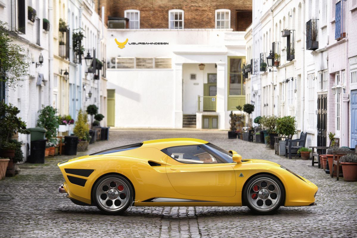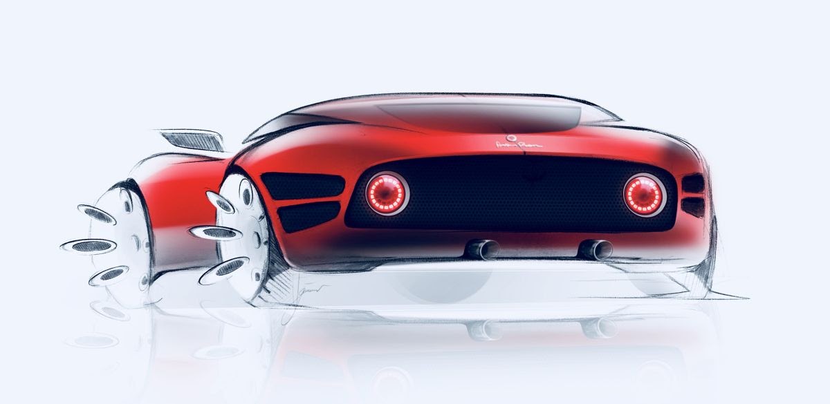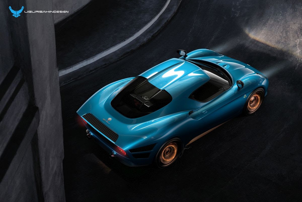 As it would have been too easy just to copy the original closely, I decided to go the hard way and develop a production ready concept, based on existing Alfa Romeo chassis. Because of the nimble size as well as the ultra-light weight of the original vehicle, it was only common sense to develop a design based on the fabulous Alfa Romeo 4C underpinnings. That created a huge challenge, as the proportions and hard points of the 4C chassis are quite different to the original Alfa 33 Stradale. In order to get closer to the proportions of the Stradale 33, the rear of the car was extended in length in order to create sleek rear fenders that extend all the way back to the edge of the rear end.