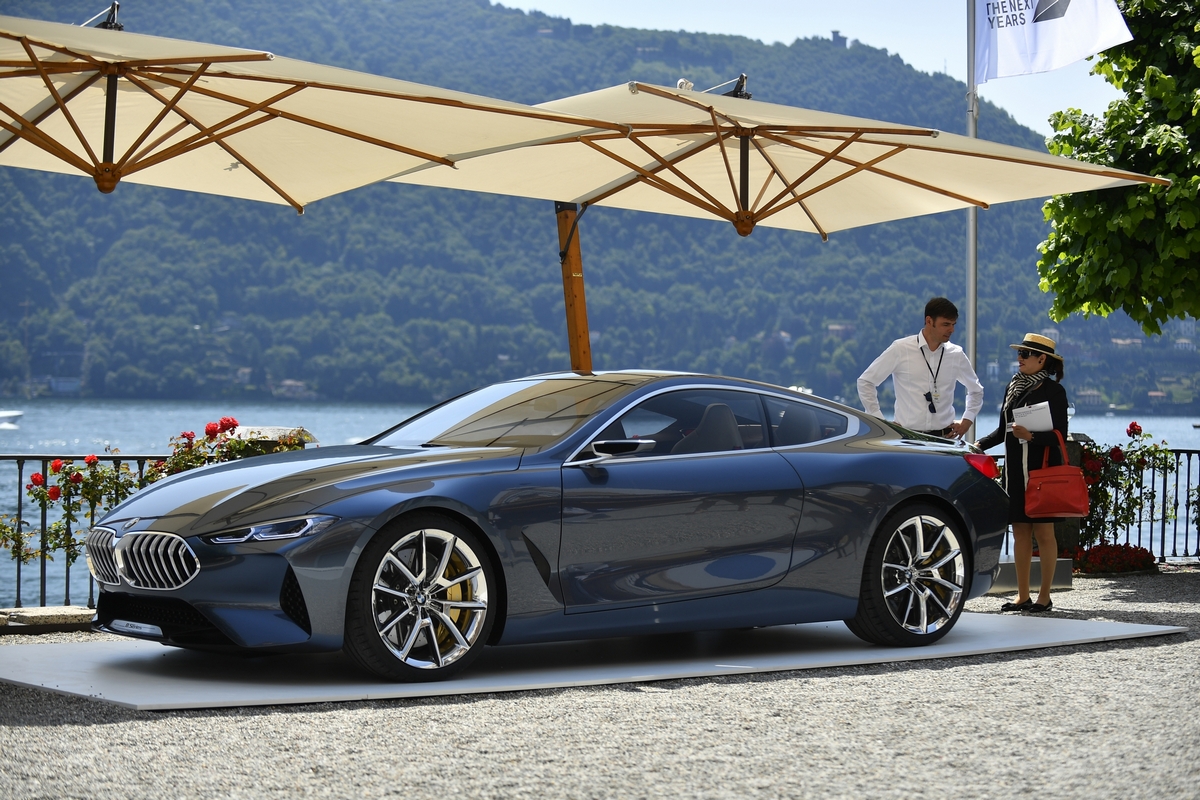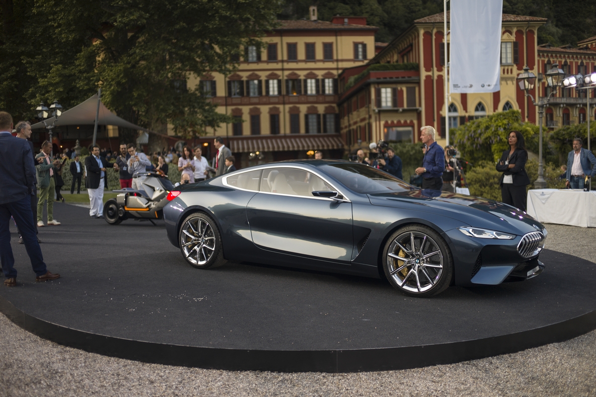 at the launch of the concorso d’eleganza villa d’este 2017, the bmw group presented two spectacular concept vehicles on the shores of lake como. they conveyed fascinating perspectives on the future of individual mobility. the bmw concept 8 series is the precursor to a luxurious sports coupé that will already be presented in the marketplace next year. the bmw group uses this coupé to give a vision of a sports car combining uncompromising dynamic performance with modern luxury. the study continues the successful tradition of large coupés from bmw and interprets classic design attributes in a new language of form. this is expressed in clear and precise line contours and powerful choreography of surfaces.