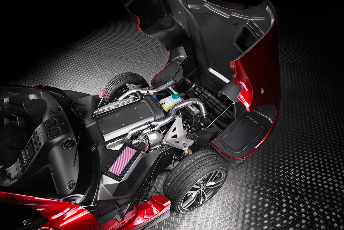 The 3-litre 6-cylinder engine is based on proven Swedish technology, but has never been mounted lengthways before. A proprietary turbocharger design and oil system have resulted in more power while also enabling the Indigo3000R to withstand the high G-forces present in a modern sports car when accelerating, braking, and cornering. The powerful nature of the engine is evident in the 400 Nm of torque at 2500 rpm. At 5300 rpm the engine delivers 307 brake horsepower (226 kW) via the manual Tremec transmission.