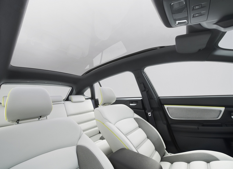 - “silvery white leather” is used as the base material for the seats, which firmly envelopes passengers to provide a secure feeling. the use of sporty mesh in selected areas works to create a high quality, yet casual mood, and ”yellowgreen” piping gives the interior a sporty and stylish finish.