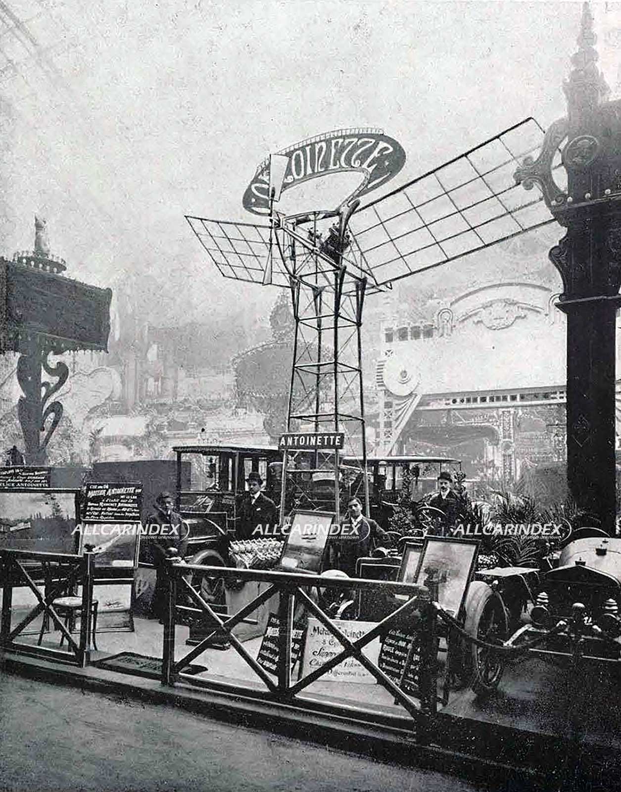 Antoinette was a French automobile manufacturer based in Puteaux, Seine, primarily known for its production of aero engines rather than cars. The company gained attention at the 1906 Paris Salon, where it showcased a notable 7270 cc V8 engine that produced 32 horsepower. This innovative engine featured a hydraulic clutch with variable slip, eliminating the need for a traditional gearbox. The following year, in 1907, Antoinette exhibited a 16 horsepower four-cylinder car alongside the V8 model.