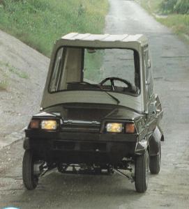 In 1980, the company introduced a more conventional front-wheel drive system. The following year, an open variant called the Flipper Donky was launched, expanding the model range. The final iteration of the Flipper was a more traditional microcar, equipped with a 50cc Polymécanique engine, marking a shift in design philosophy for the brand.